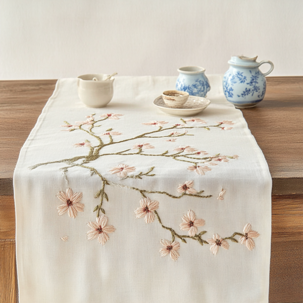Be the first to review “Cherry Blossom Embroidered Table Runner, White Cotton Linen, 14 x 72 inches” Cancel reply